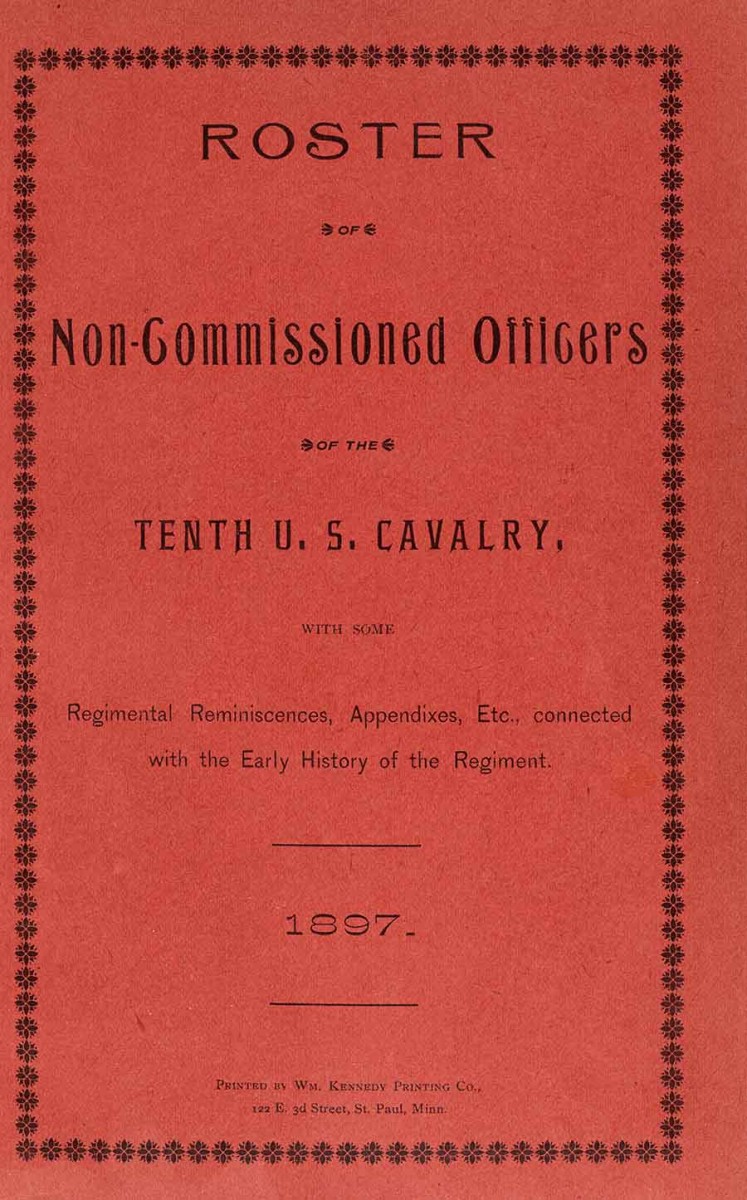 Roster of Non-Commissioned Officers of the Tenth U.S. Cavalry, 1897. Printed by William Kennedy Printing Co. This pamphlet contains reminiscences about African American cavalrymen who served in the Tenth U.S. Cavalry. The Huntington Library, Art Museum, and Botanical Gardens.