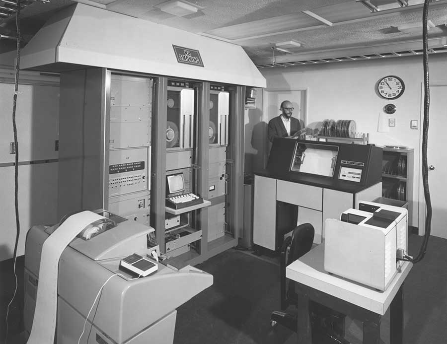 Computer room for the 150-foot tower telescope, Mount Wilson Observatory, ca. 1974. Image courtesy of the Observatories of the Carnegie Institution for Science Collection at The Huntington Library, Art Museum, and Botanical Gardens.