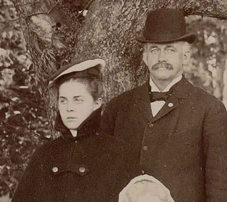 Clara Huntington and her father, Henry E. Huntington, ca. 1900. Detail from a group family portrait taken in Oneonta, New York, where both Henry and Clara were born. The Huntington Library, Art Museum, and Botanical Gardens.