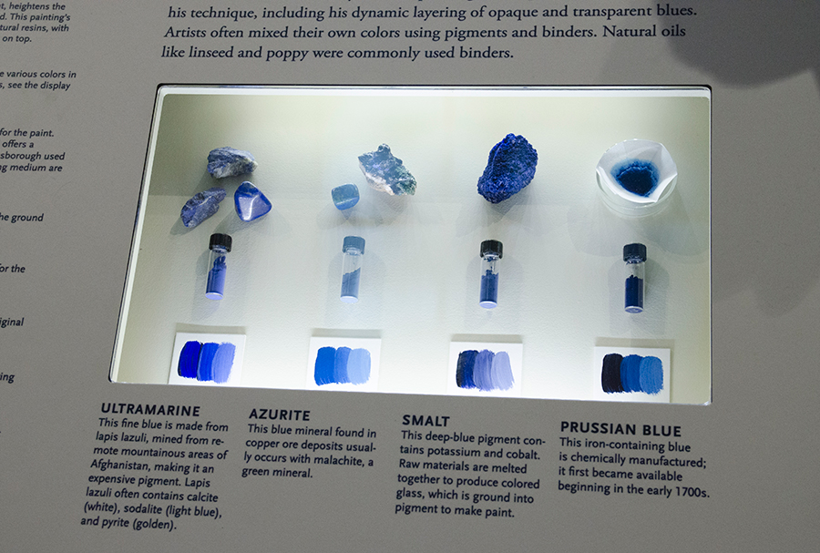 This didactic panel—“How is Blue Made?”—shows students the four pigments of blue that appear in The Blue Boy. Photo by Lisa Blackburn.