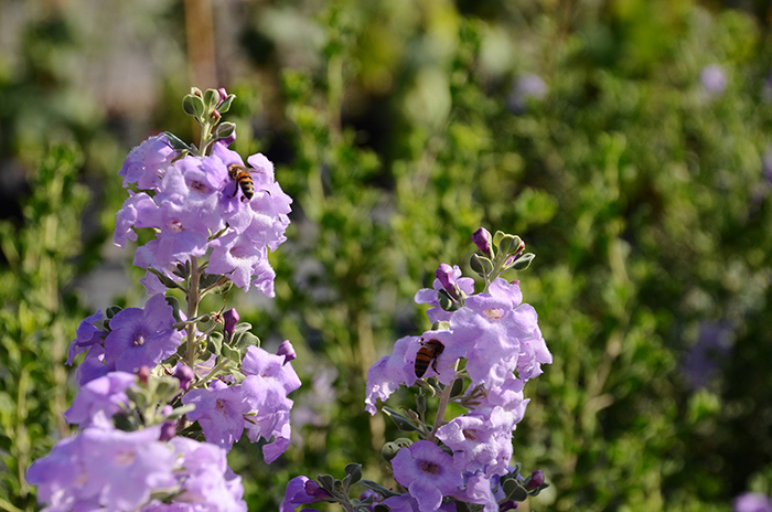 The profusely flowering Leucophyllum langmaniae 'Lynn's Legacy' is one of many drought-tolerant plants that will be available at the Fall Plant Sale, Oct. 24–26. Photo by Lisa Blackburn.