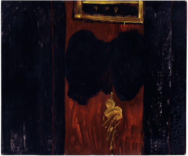 Capriccio (1945) by Robert Motherwell (1915-1995). Oil on bone board. Huntington Library, Art Collections, and Botanical Gardens, purchased with the Connie Perkins Fund Endowment and Gift of the Dedalus Foundation.