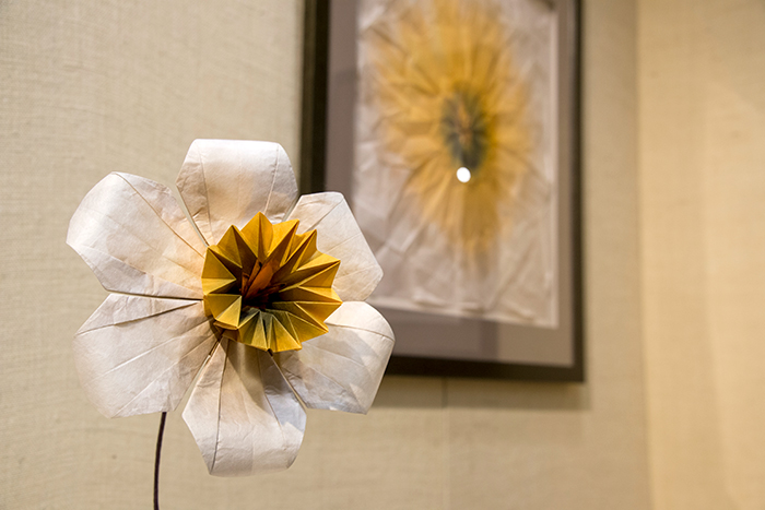 “FlORIlegium” demonstrates the wonders of nature through intricate folding patterns that create line and form. The exhibition’s title is Latin for “a gathering of flowers” and refers to illustrated books of botanical art from the 17th and 18th centuries, the horticultural Age of Discovery. It’s also a play on words because part of the word, “ori,” means to fold in Japanese.