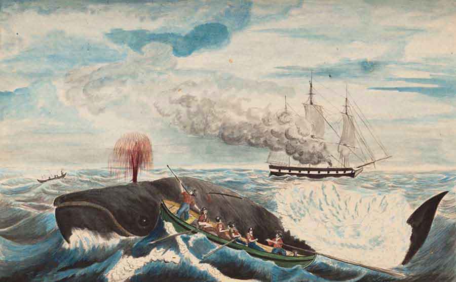 David E. Marshall (“Wicked Ned”), Right Whale, ca. 1851, watercolor. The Huntington Library, Art Museum, and Botanical Gardens.