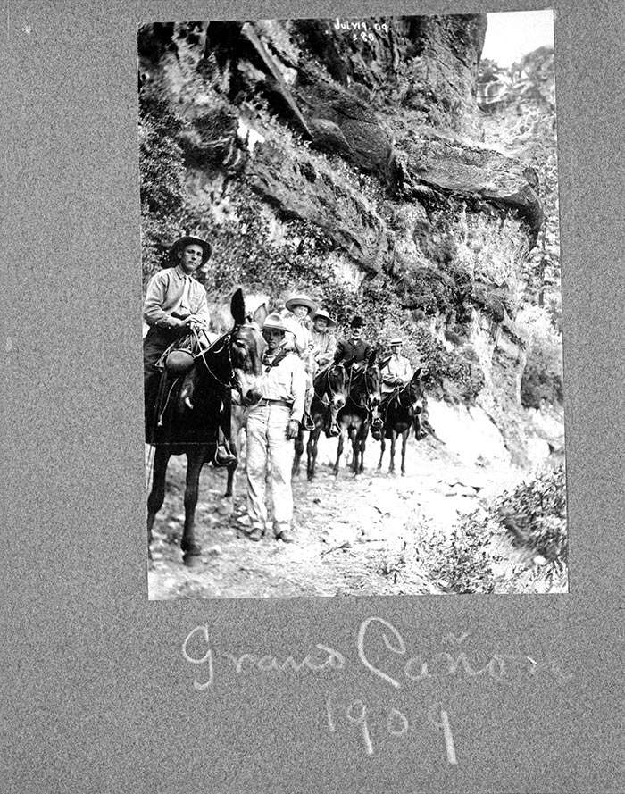 Charmian London and Jack London (third and fourth from the left) on a guided mule trip into the Grand Canyon. Photographer unknown, 1909. The Huntington Library, Art Collections, and Botanical Gardens. Charmian London and Jack London (third and fourth from the left) on a guided mule trip into the Grand Canyon. Photographer unknown, 1909. The Huntington Library, Art Collections, and Botanical Gardens.