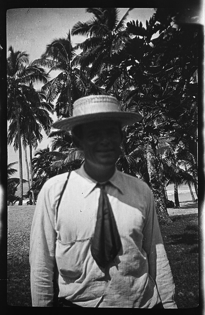 Jack London in Samoa, wearing a straw hat. Photo attributed to Charmian London, 1908. The Huntington Library, Art Collections, and Botanical Gardens. Jack London in Samoa, wearing a straw hat. Photo attributed to Charmian London, 1908. The Huntington Library, Art Collections, and Botanical Gardens.