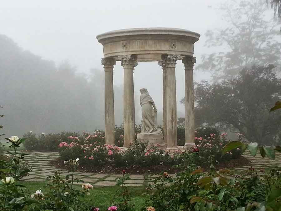 A misty morning in the Rose Garden in mid-April, about a month into the closure of the grounds. “It feels very lonely and quiet . . . Kind of melancholy,” says John Villarreal. The 18th-century “Temple of Love,” one of the focal points of the garden, is encircled by ‘Passionate Kisses’ roses. Photo by John Villarreal.