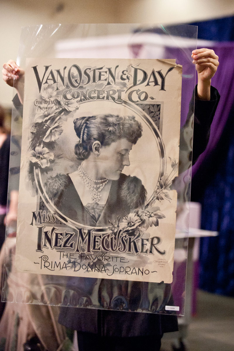Among the Huntington posters on view was Miss Inez Mecusker, The Favorite Prima Donna Soprano (date unknown), from the Jay T. Last Collection of Lithographic and Social History. Photos by Martha Benedict.
