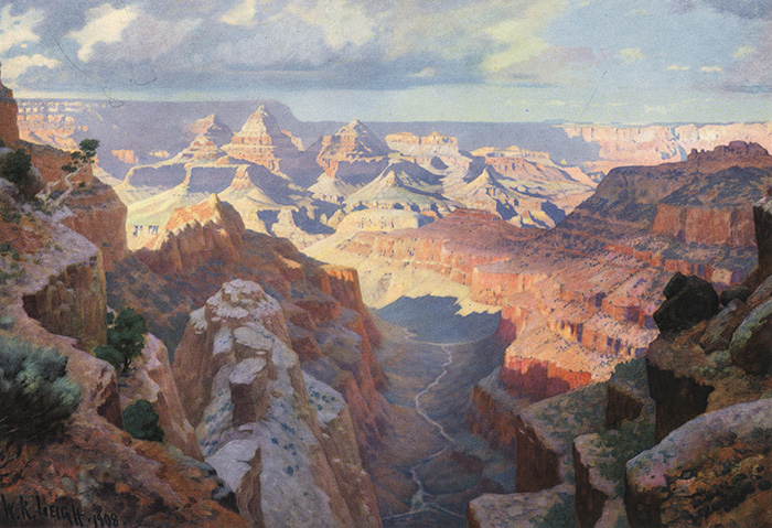 William R. Leigh, Grand Canyon (1911), as adapted for Fred Harvey Service dining car menu, 1950. The Huntington Library, Art Collections, and Botanical Gardens. Used with permission of the BNSF Railway Company.