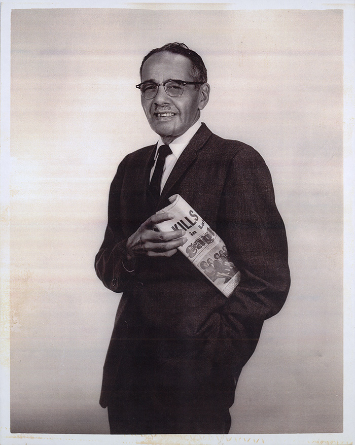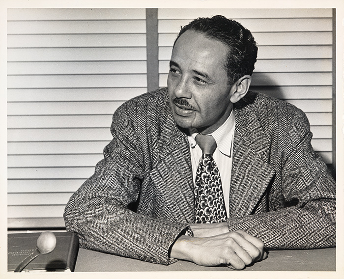 Loren Miller, holding a copy of the California Eagle, 1951. In 1929, Miller came to Los Angeles, where he worked as editor of the California Eagle, the oldest African-American newspaper in the city. He purchased the newspaper in 1951. Langston Hughes Collection. The Huntington Library, Art Collections, and Botanical Gardens.