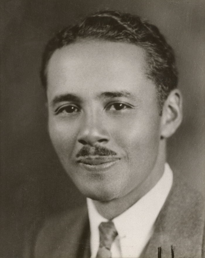 Loren Miller, ca. 1933. Born in Pender, Nebraska, in 1903 to John Miller, a former slave, and Nora Herbaugh, a white Midwesterner of Dutch ancestry, Loren Miller attended Kansas University and received his law degree in 1928 from Washburn Law School in Topeka, Kansas. Langston Hughes Collection. The Huntington Library, Art Collections, and Botanical Gardens.