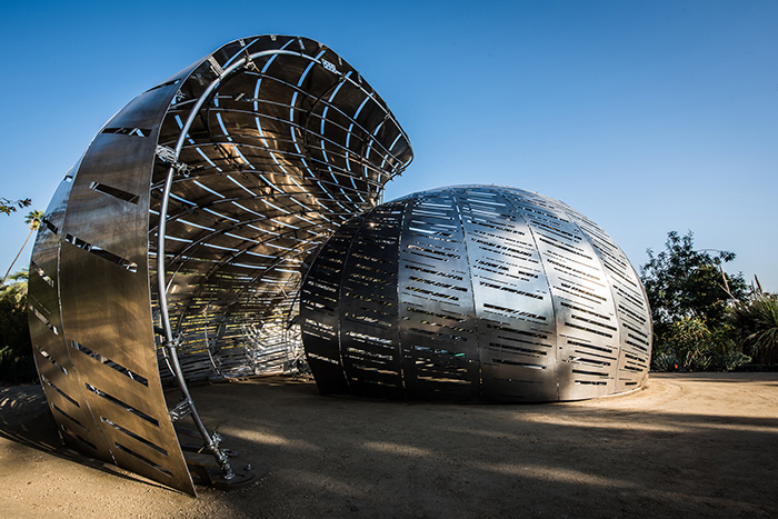 We published a Q&A with Dan Goods and David Delgado, visual strategists at NASA’s Jet Propulsion Laboratory, about the Orbit Pavilion, a large aluminum structure in which visitors can hear sounds representing the movement of the International Space Station and 19 Earth satellites. Read “Hearing NASA’s Earth-Science Satellites.”
