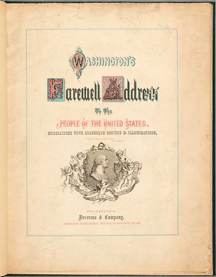 Washington's farewell address to the people of the United States, Philadelphia: Devereux & Co., ca. 1858. The Huntington Library, Art Collections, and Botanical Gardens.