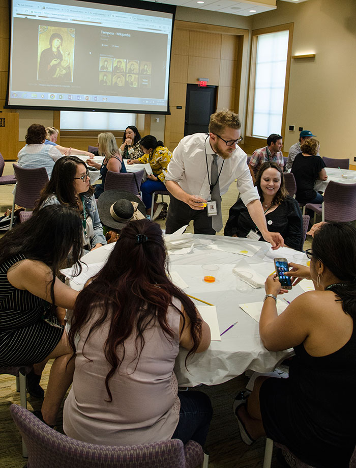 During their summer break, 30 selected teachers participated in the first Huntington Voices teacher institute, spending a week on site to learn from Education staff and others how to use The Huntington’s collections to strengthen their student’s voices through writing, spoken language, performance, and visual and media arts. The teachers hailed from schools located from Beaumont to Torrance and had classroom teaching experience ranging from three to 36 years.